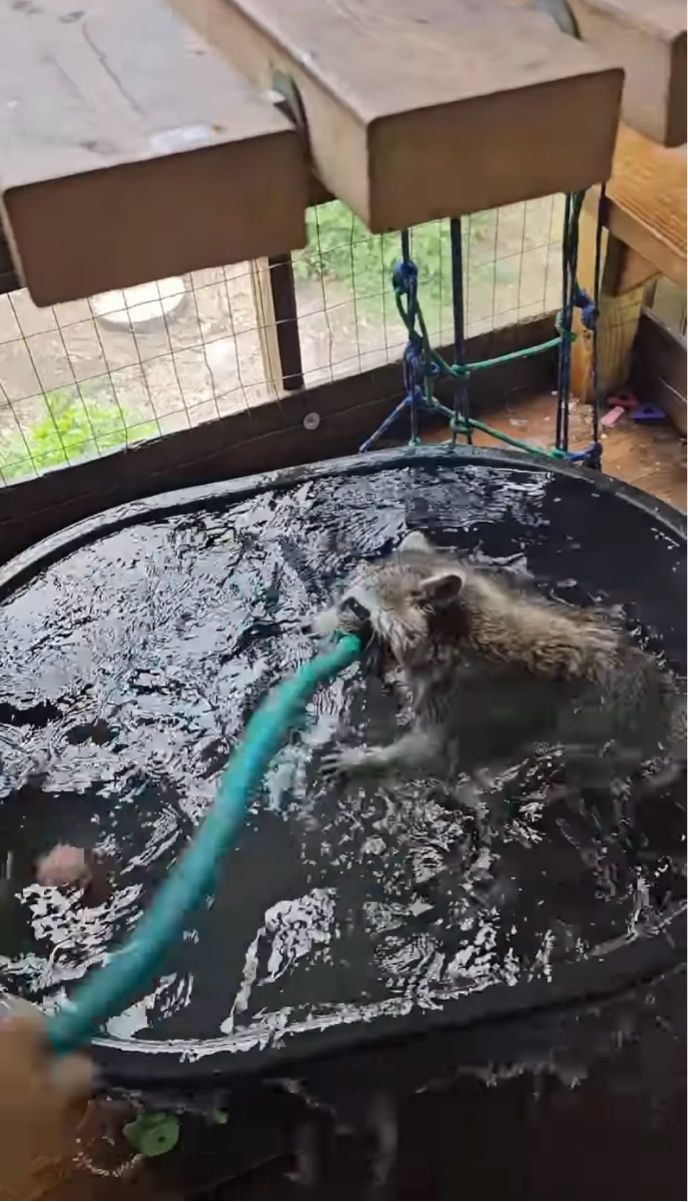 3. アライグマのバスタイム!遊んではしゃいで満喫中!【海外・動画】