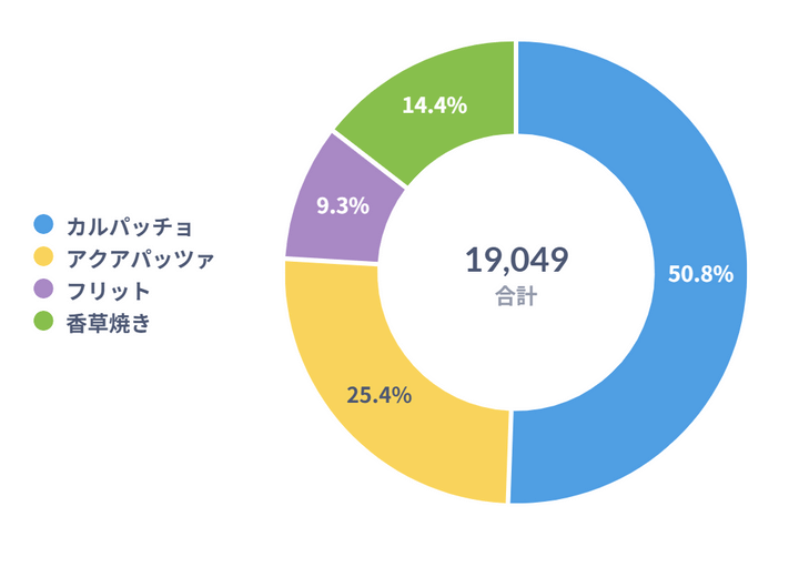 1位は華やかな見た目の「カルパッチョ」。おしゃれな前菜として不動の人気です。カルパッチョは、すしや刺身など、生魚を食べる習慣がある日本人だからこそ人気があるのかもしれませんね。 2位は「アクアパッツァ」。魚介のうまみが溶け出したスープは絶品です。パンを添えたりパスタを入れたり、最後まで楽めます。 3位は「香草焼き」がランクイン。ハーブやオリーブオイルの香りが、魚のうまみを引き出します。そして4位は「フリット」。レモンをキュッと絞って食べると、とっても軽やか!シンプルながらもクセになる人気メニューです。