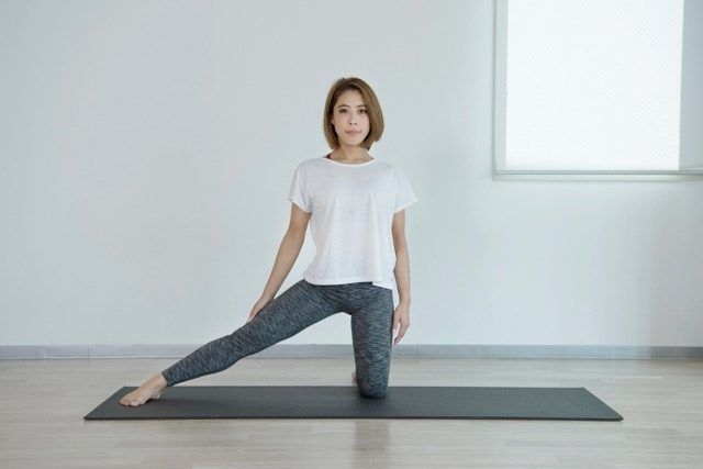 腰まわりのたるみや脚のもたつきが気になる人におすすめなのが、ヨガの簡単ポーズの【パリガーサナ】のバリエーションポーズ。体の側面をしっかり伸ばしながら、脚の外側からお尻にかけての筋肉を鍛えることで、下半身全体を引き締める効果が期待できます。特に、デスクワークで凝り固まりやすい腰まわりやヒップラインをスッキリ整えたい人にぴったりです。