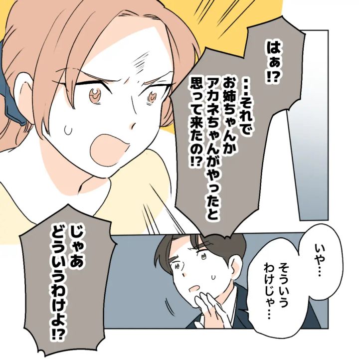 ワタルの話を聞いて「はぁ!?」と激高したサクラ。「それでお姉ちゃんかアカネちゃんがやったと思って来たの!?」ワタルを問い詰めました。