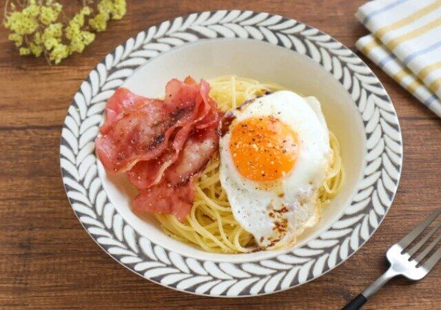 ベーコンチーズスパゲティwith目玉焼きの作り方(調理時間:10分)