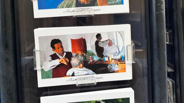 ギリシャのアテネで出会ったポストカードは、パルテノン神殿を目指す道中のお土産やさんで販売されていました。ギリシャの日常を切り取った温かみのあるユニークなデザイン。街中を歩いてるとふと見かけそうな床屋さんでの日常の1枚。他のお土産やさんでも販売されてなくてつい心が奪われました。