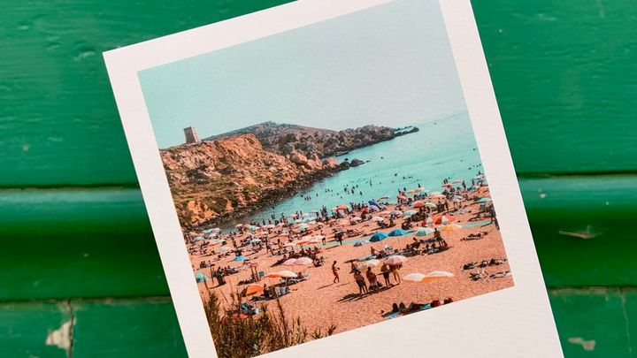 きっかけは、マルタ語学留学中でした。友人とたまたま立ち寄ったアートギャラリーのお店で見かけた1枚のポストカード。マルタ島の青く美しいビーチとそこでのんびりと日光浴をしながらビーチタイムを楽しむ人々が写っている何気ない日常の風景。