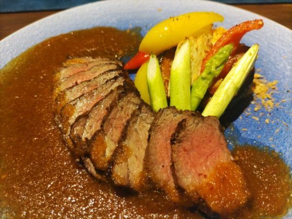 思わず歓声が上がった「和牛赤身肉のロティ 中華風ジャポネソース」。