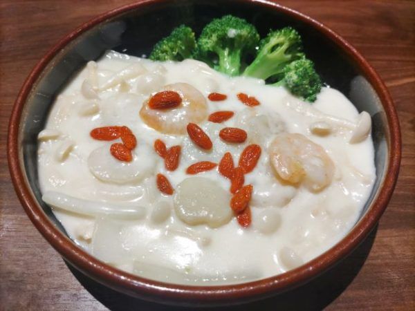 白菜をミルクベースのソースでトロトロになるまで煮込み、旨味が引き出されたクリームソースに、プリップリの帆立と海老が入った一皿。まろやかなクリームソースが、一つ一つの具材の旨味を引き出してくれます。