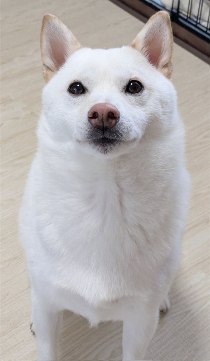 目を輝かせて飼い主さんを見つめるこの子は、白柴の『まんまる』くん。 なんでも、おやつをもらおうとしているところだったようですが、確かにこんな風にまっすぐ見つめられると抗えない魅力がありますね。 これまでの経験で、「こうすればおやつをもらえる」と学んだのでしょうか。