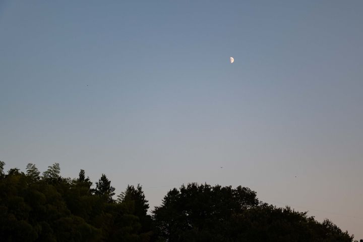 別日、夕方に玄関を出てみると、ほんのりと色づいた空と月の姿が。とても美しかったので、慌てて部屋までカメラを取りに行き「今日も1日が終わるな」と思いながら、撮影した1枚です。