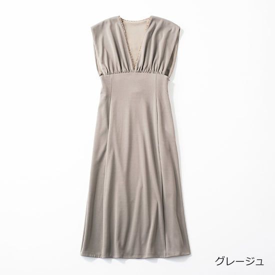 Vラインのドロップした肩が上半身の華奢見えに繋がり、ハイウエストは腰位置を高く脚を長く見せてくれます。着ていてラクなのにキレイめな印象を与えてくれるポンチジャージーを使っています。Vラインにあしらわれた控えめなリボンを使ったフリルが大人らしい甘さを演出してくれます。インナー次第で1年中着回しできるのが魅力!