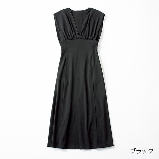 ②着心地のよさと着やせを両立「タックリボンヘムジャンパースカート」