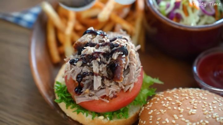 食べる際は、バンズにマヨネーズを塗り、お好みの野菜や肉を挟むだけ。TastyTimeさんは、レタスやトマトの他、ほぐしたプルドポークをたっぷり挟み、バルサミコソースをプラスしていました。ぷちぷちとしたゴマとほろほろのプルドポークが、ハンバーガーを特別な一品にしてくれますよ♡