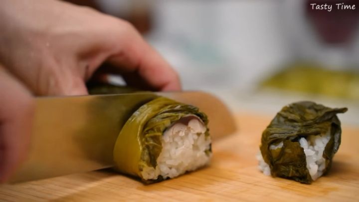 TastyTimeさんは、このおぼろ昆布しめ鯖と高菜を使って棒寿司を作っていました。広げた巻きすの上に高菜→おぼろ昆布しめ鯖→酢飯の順にのせて巻いていきます。巻き終わったら食べやすい大きさにカットするだけ!しめ鯖と酢飯のほどよい酸味、おぼろ昆布の旨味に、高菜の歯ごたえが合わさって絶品のおいしさです♪