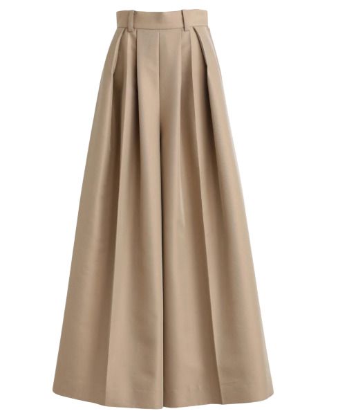 ベージュチノパンツ/hLM(ヒューエルミュージアム) フレアスカートのような、ドレッシーなデザイン。キュッと絞られたウエストで、美しいフレアシルエットもいっそう引き立つ。