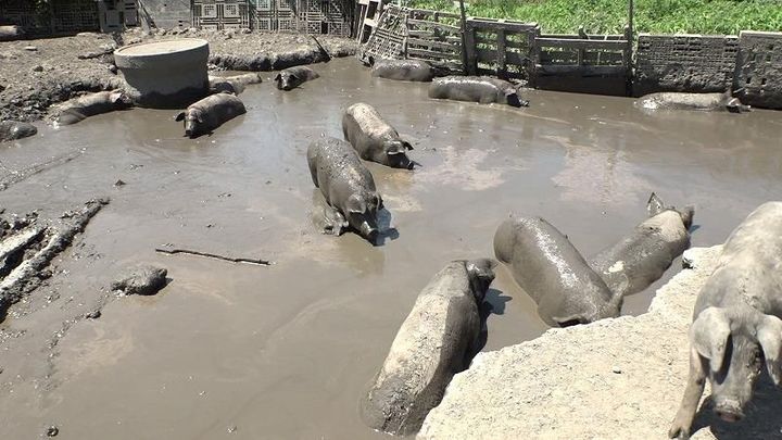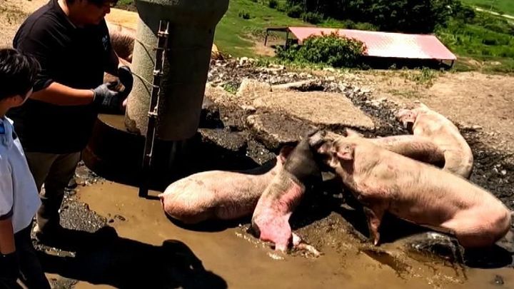 3. 子ブタ100頭にツンツンされる!エサよりも大好物な真っ黒で意外なモノとは