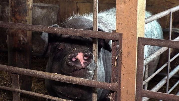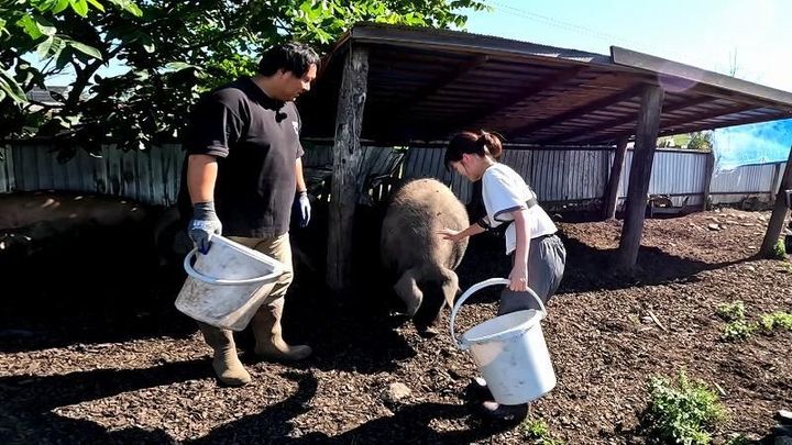 まずは、2か月後に出産を控えたブタのエサやりをお手伝いします!