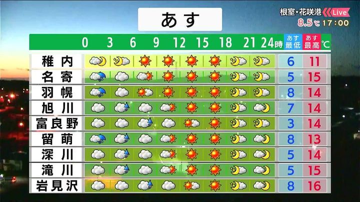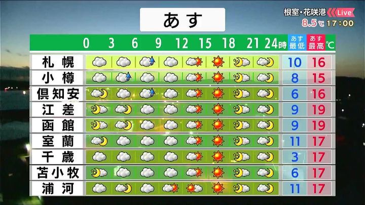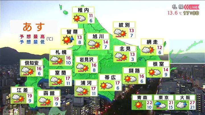 あす15日(水)の札幌です!朝昼晩の天気をもんすけでお伝えします!