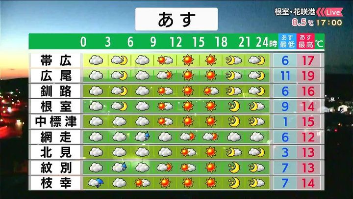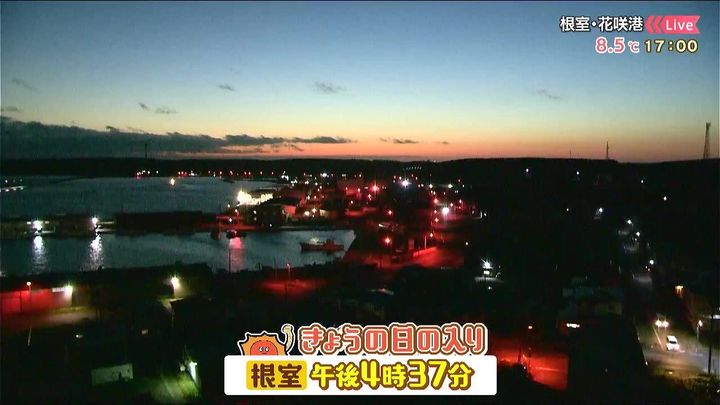 背景は14日午後5時ごろの根室花咲情報カメラ