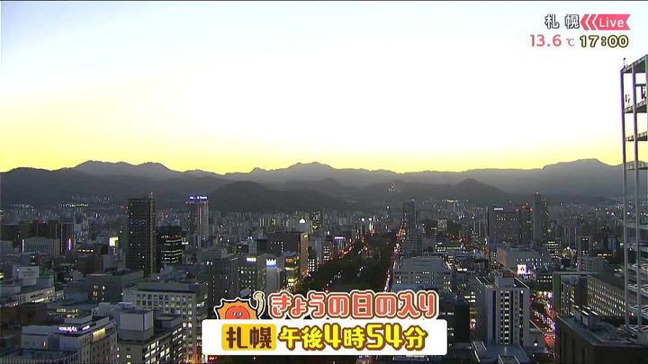 1日に1~2分ずつ日の入りが早くなっています。きょう14日(火)の日の入りは午後4時54分でした。