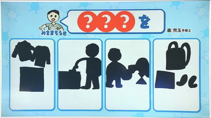 日ごろからの備えを教えてくれる「みをまもる君」。シルエットになっていて、「〇〇〇を」と言ってます。この丸の中に入る3文字の言葉、なんでしょう?