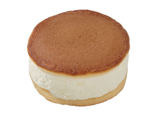 生クリームを加えたしっとりもちもちとした白生地でミルククリームを包んで焼いて、さらにミルクホイップを入れました。