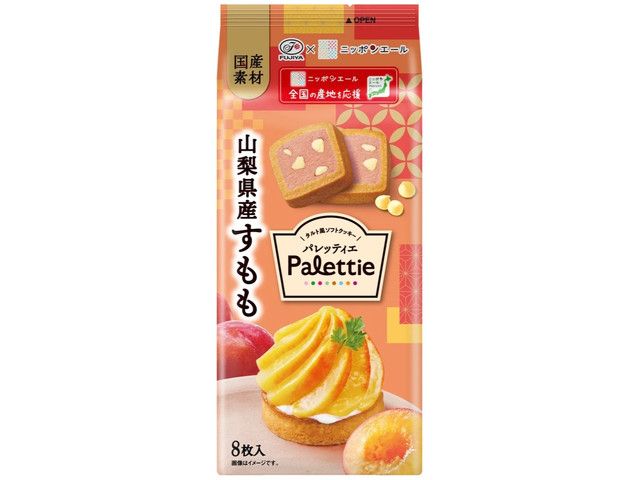 ・山梨県産すもも果汁と国産米粉、ホワイトチョコチップを練り込んだしっとり生地に、香ばしいサクホロ生地を組み合わせたソフトクッキー ・すもものタルトをイメージした、彩りあざやかな桃色のクッキー
