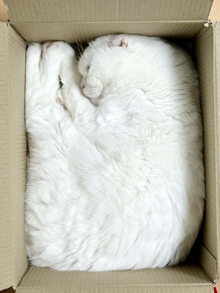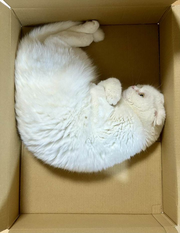 3. 箱の中に収まるネコ。しっくりきてる時ときてない時の比較が話題に「みっちりがお好みなのね」「しっくりきてない方は、目ん玉パッチリ」