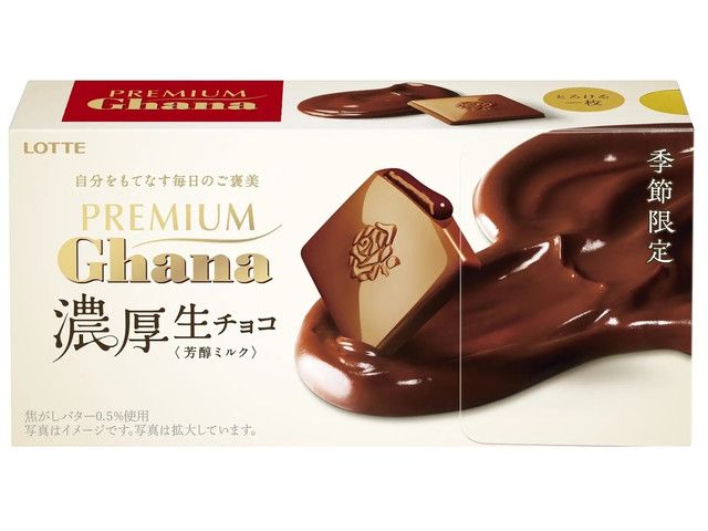 ・コク深く芳醇なミルクの味わいを引き出した、贅沢で濃厚なとろける生チョコレートです。 ・とろける口どけの生チョコをガーナミルクの薄いシェルの中に閉じ込めることで、すっととろける繊細な口どけを感じられる贅沢な一枚に仕上げました。