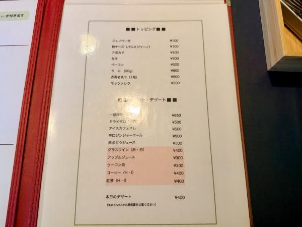 すべてのメニューにサラダまたはドリンクが付いており、リゾットへの変更も可能です。どれも魅力的で「今日はパスタ?それともリゾット?」と迷ってしまう品揃え。