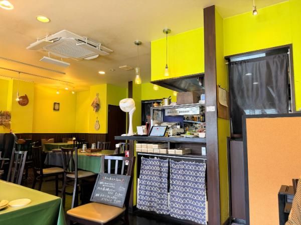 店内はピスタチオのようなグリーンが印象的で、明るくおしゃれな雰囲気。とても居心地がよく、ゆったりと食事が楽しめます。