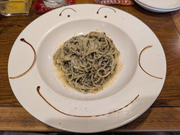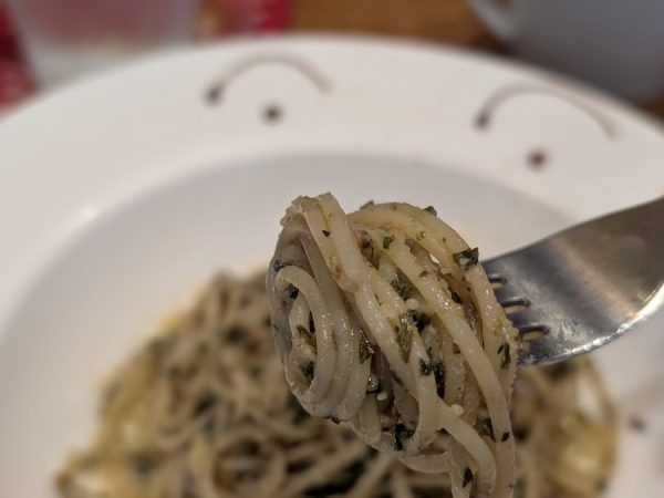 爽やかさを感じるバジルにナッツの風味と食感がアクセントになったパスタソース。 細めの麺がしっかりとソースに絡んでます。 私にとって普段は食べる機会が少ないがブドリさんのジェノベーゼはめっちゃ美味しい♪ 初夏から秋口までの期間限定のパスタだそうで食べることができてめっちゃラッキーでした。