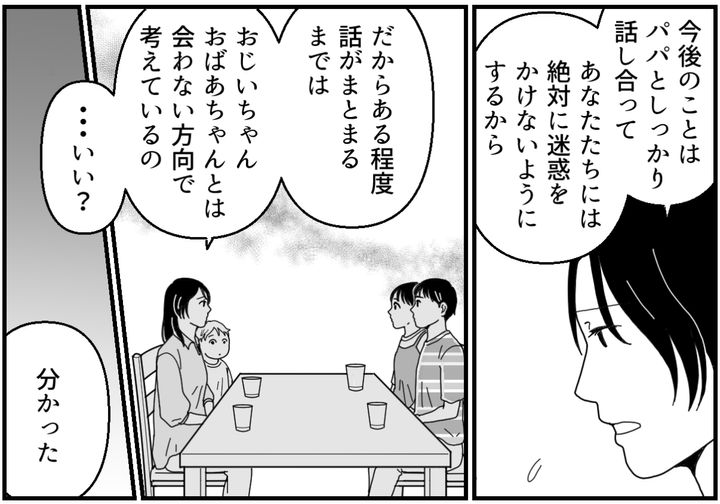 義兄と絶対に関わらせないという約束をしてもらえないかぎり、子どもたちを義両親に接触させるわけにはいきません。子どもたちもなんとなく理解したようでした。するとレイが義両親の様子について、思いがけないことを言い出します。