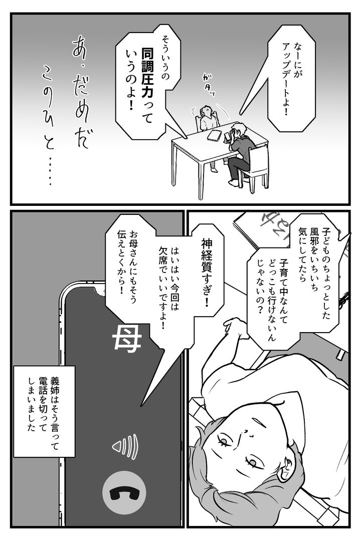 <感染する義実家>義姉の謎理論「咳してるけど大丈夫!」NO突きつけたら逆ギレ…?【まんが】