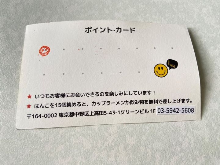 ポイントカードもあり、はんこ15個集めるとカップラーメン又は、飲み物をもらえるそうですよ。