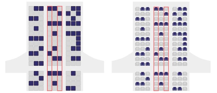 赤枠範囲が中央の通路側座席 Photo by shutterstock