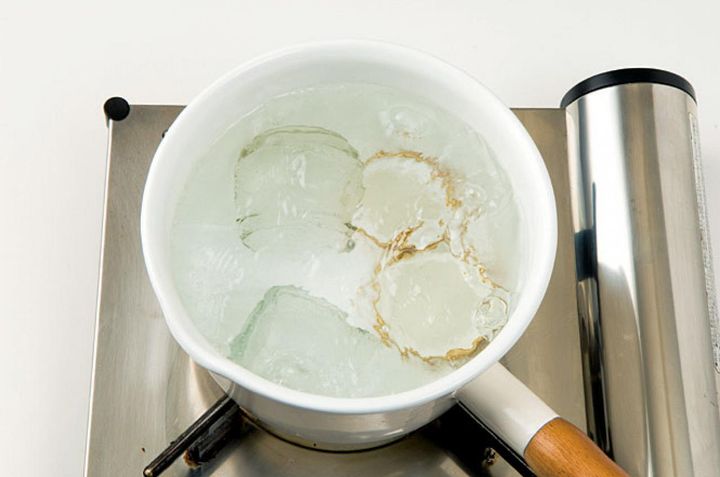 鍋に保存びんが完全に沈むくらいの量の湯を沸かし、よく洗った清潔な保存びんとふたを入れ、3〜4分沸騰させる。