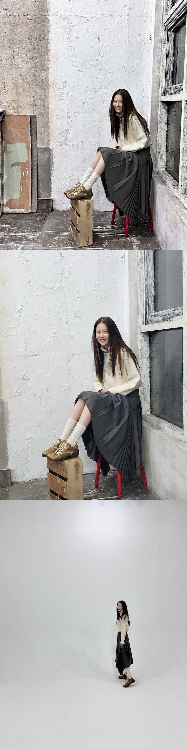 コ・ヒョンジョンは10月14日、自身のインスタグラムを更新。長袖シャツにプリーツスカート、スニーカーを合わせたカジュアルな装いで微笑む姿を公開した。