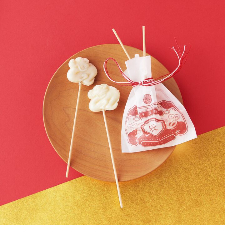 四季折々の美しい菓子を作り出すHIGASHIYA。昔ながらの製法で、水飴と砂糖を丁寧に煮詰めた口どけのよい飴は、懐かしく優しい味、スティックつきで、年齢問わずおすすめです。辰を象った飴のフォルムは、アートのように精巧で食べるのがもったいなく感じるほどですが、新年を祝うプチギフトに最適。売り切れ次第終了の人気商品です。