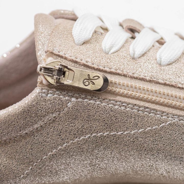 デザインに干渉しないサイドファスナーつき。スムーズに脱ぎ履きができる。