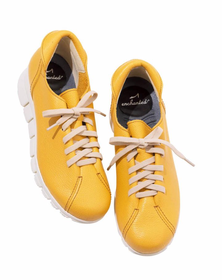 軽くてやわらかい本革を使用。マスタードカラー×トラックソールで個性を楽しんで。