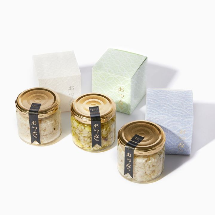 おつなの瓶入り自家製つな「おつな」プレーン¥1,350 実山椒¥1,436ジェノベーゼ¥1,436