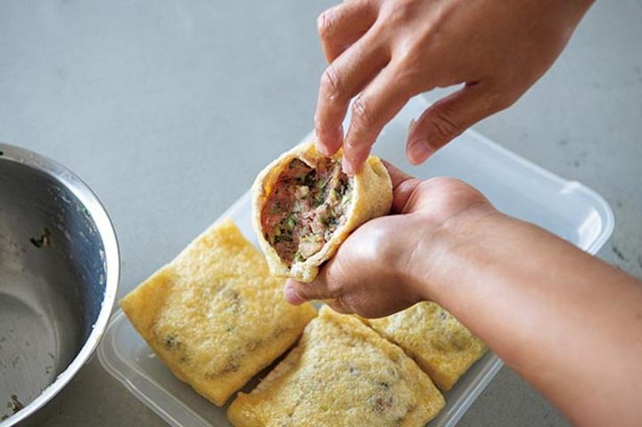 【2】油揚げにあんを詰める