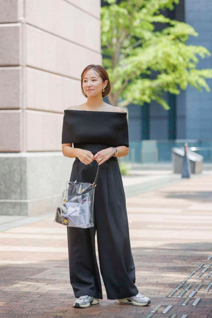 元々首が短いのがコンプレックスでしたが、ヘアスタイルのおかげで気にならないようになったのが大きな変化。また、オフショルなど肌見せや女っぽいアイテムを着ても、ヘルシーかつ、モードに着こなせるようになりました。スタイリングはその日の気分で使い分け。