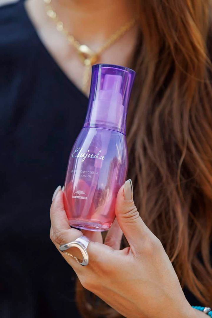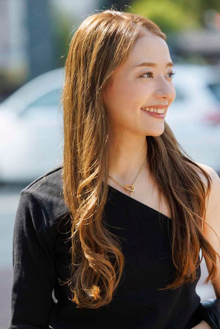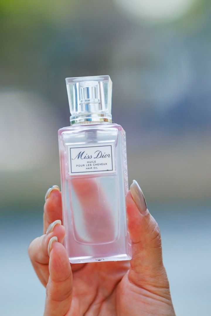 大人になってからは一度も短くしたことがなく、ロングヘアがトレードマーク。デニムに肌見せトップスのカジュアルコーデもどこか女っぽさを感じるのはロングヘアのおかげ。スキンケアと同様、ヘアに対してもとことん向き合ってケアしています。常にツヤをキープし、モチベーションを保ち続けるのがもはや趣味(笑)。そのおかげで髪を褒められることも多く、それもまた嬉しいんです。超軟毛が悩みなのでスタイリング剤にはこだわり強め。ミルボン エルジューダ ブリーチケア セラムは何十本も試してきた中の逸材です。フレグランス効果もあるミス ディオール ヘア オイルもおすすめ。