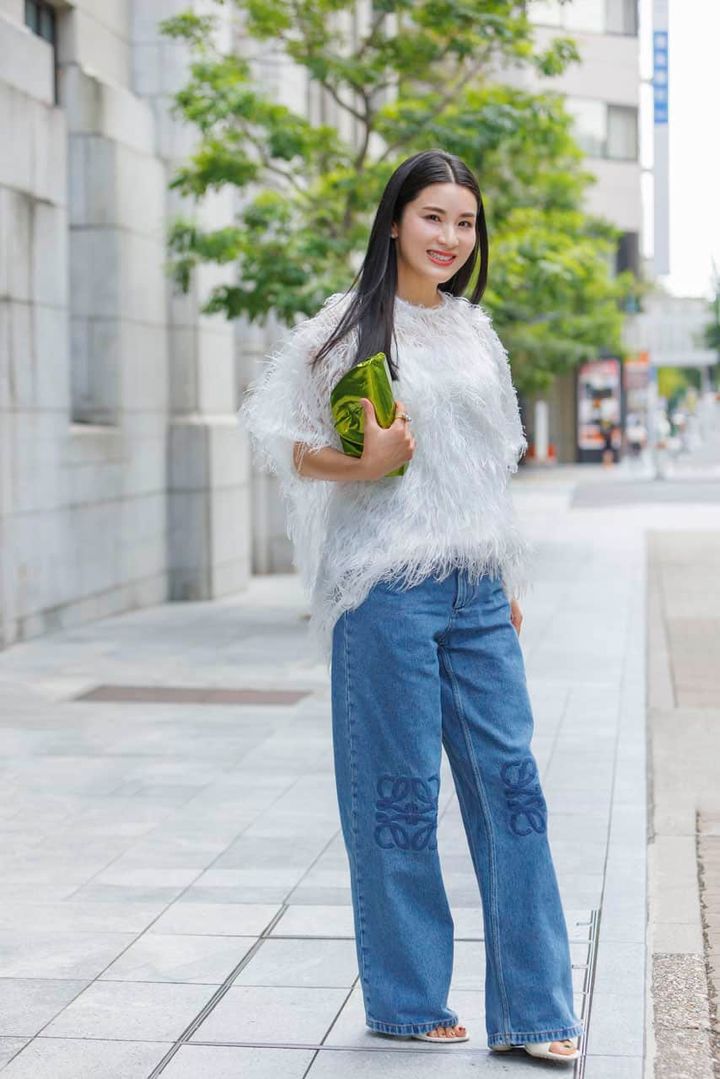 ロング歴16年。「髪切ろうかと思うんだけど」って言うと、友人や担当の美容師さんたちが切るのを止めるほど、スーパーロングヘアが代名詞に。髪の治安を守ってくれるのは信頼しているサロン、suntie Mnの存在が絶大。セルフケアだけでは足りないからこそ、プロの手を借りての定期的なサロンケアは欠かしません。今日は透け感が可愛いシアーボーダートップスにピンク小物を効かせたモードなスタイリングに合わせて、ヘアはダウンスタイルに。