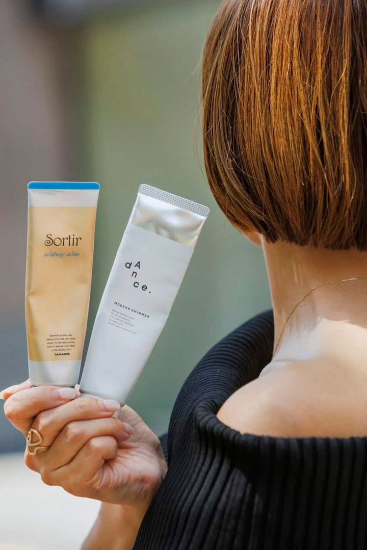 ARIMINOダンスデザインチューナー モダンシマーはベタつかずツヤと束感が出せるので基本的にARIMINOを使っていますが、その日の髪の状態やコーデに合わせてウェット感を出したい時はTAMARIS ソルティール ウォータリーワックス を使ったり、2つを混ぜて使うことも。前髪とアホ毛にはナチュラルなのにキープ力抜群で香りが良いTHERATIS ドリーミー マトメイクスティックがマスト。バッグの中に忍ばせています。