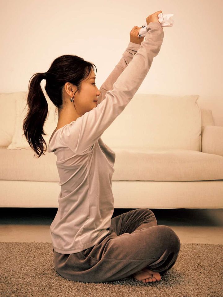 現代を生きる私達は気が付かないうちに上半身が凝り固まりがち。それゆえ体が緊張して不眠に繋がることもあるから、就寝前のストレッチで特に上半身を解きほぐして。