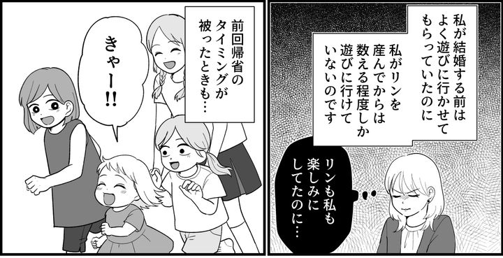 私(ナオ)は、夫のカズナリと娘のリン(3才)の3人暮らし。自分のキャリアや経済的な状況を考えて、リンは一人っ子と決めています。兄のコウジは私の10才年上ですが、昔からとても仲良しです! 兄はずいぶん前にケイコさんと結婚。今では中2のアヤネちゃん、小4のカオリちゃん、6才のマドカちゃんの3姉妹の父です。リンは一人っ子なので、兄の家に遊びに行くとお姉さんたちにたくさん遊んでもらってとっても楽しそう! 私と兄も仲が良かったため、リンと兄の子どもたちも同じように仲良くしてもらいたいと思っていました。しかし……?