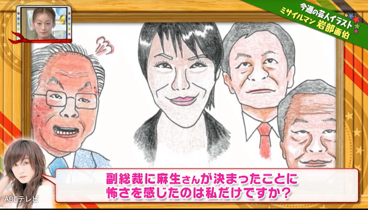 モデルでタレントの西山茉希からは、自民党の人事に対して「副総裁に麻生さんが決まったことに怖さを感じたのは私だけですか?」とのギモンが。