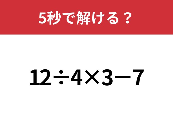 大人なら間違えずに解けるはず?「12÷4×3−7」5秒で解ける?