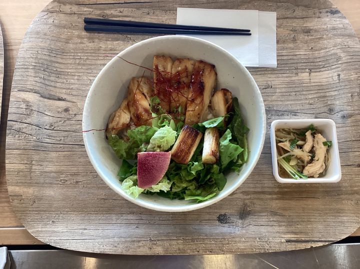 香ばしく焼き上げた鶏肉に、甘辛い特製ダレをとろりとかけた一品。白ごはんとの相性も抜群で、ひと口ごとにほっとするようなやさしい味わいです。