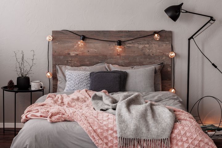 色や質感と同じくらい重要なのがライティング。「天井からのどぎつい照明は避け、アンビエントライトとアクセントライトを組み合わせましょう」とコリンズさん。「壁掛け式のライトは空きスペースを作り、暖色系のライトは優しい光で居心地のいい、穏やかな夜の雰囲気を醸し出します」
